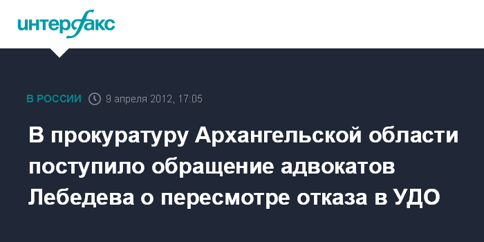 В прокуратуру Архангельской области поступило обращение адвокатов Лебедева о пересмотре отказа в УДО