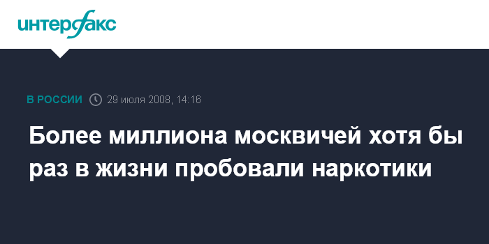 Москва. 29 июля. INTERFAX.RU - Каждый 10-й москвич хотя бы раз в жизни попробовал наркотики, сообщил "Интерфаксу" заместитель начальника Управления ФСКН России по Москве Василий Сорокин.