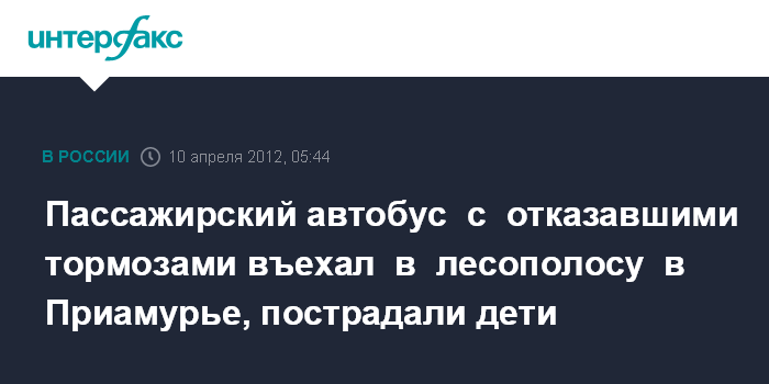 Пассажирский автобус с отказавшими тормозами въехал в лесополосу в Приамурье, пострадали дети