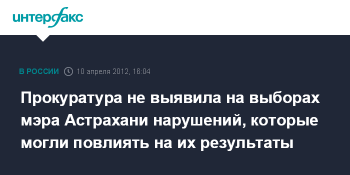 Москва. 10 апреля. INTERFAX.RU - Областная астраханская прокуратура не выявила массовых нарушений на выборах мэра Астрахани, оснований не доверять ее доводам нет, заявил член фракции "Единая Россия" в Госдуме Вячеслав Лысаков.