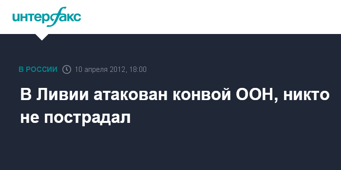 Париж. 10 апреля. INTERFAX.RU - Неизвестные совершили нападение на колонну автотранспорта ООН в городе Бенгази на востоке Ливии, сообщает во вторник европейский информационный телеканал Euronews со ссылкой на источник в ливийских спецслужбах.