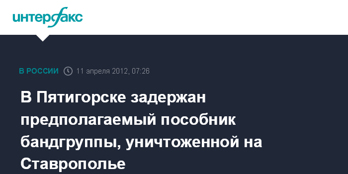 Москва. 11 апреля. ИНТЕРФАКС - Подозреваемый в пособничестве боевикам, готовившим теракты на Ставрополье, задержан в Пятигорске, сообщили агентству "Интерфсакс-Юг" в среду в правоохранительных органах.