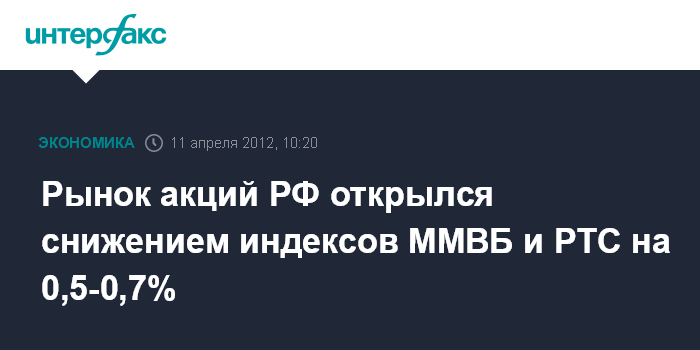 Москва. 11 апреля. INTERFAX.RU - Рынок акций РФ открылся в среду снижением котировок blue chips на фоне упавших мировых фондовых площадок, индексы ММВБ и РТС за минуту торгов опустились на 0,5-0,7%; вышедший уже после закрытия торгов в США неплохой квартальный отчет Alcoa дает сигнал на последующую коррекцию.
