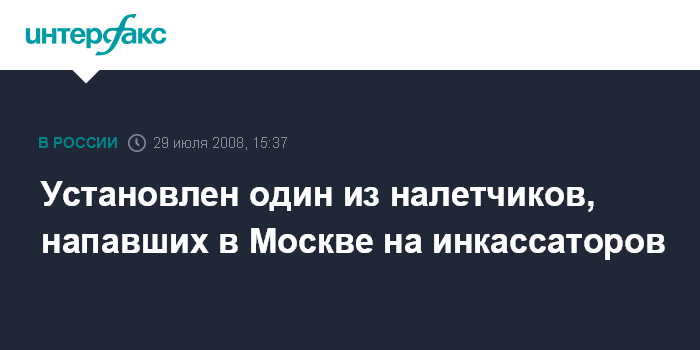 Москва. 29 июля. INTERFAX.RU - Следственно-оперативная группа Следственного комитета при прокуратуре РФ в Москве установили личность одного из участников нападения на инкассаторов, которое состоялось во вторник на Ленинском проспекте, сообщил официальный представитель СКП РФ Владимир Маркин.