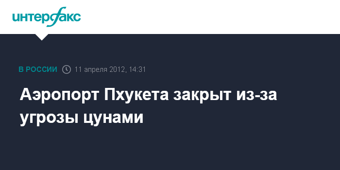Бангкок. 11 апреля. INTERFAX.RU - Власти Таиланда приняли решение приостановить работу аэропорта на курортном острове Пхукет в связи с угрозой цунами, сообщили в среду местные СМИ со ссылкой на сотрудников аэропорта.