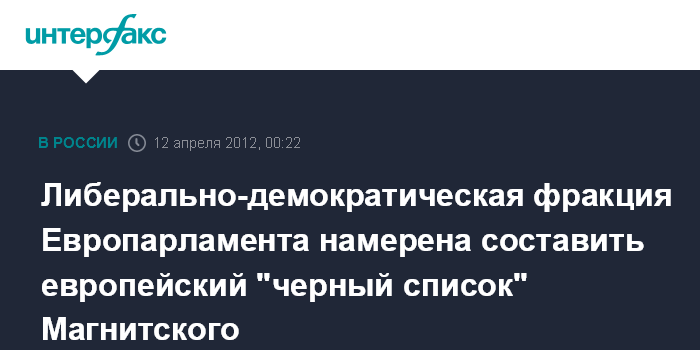 Либерально-демократическая фракция Европарламента намерена составить европейский "черный список" Магнитского