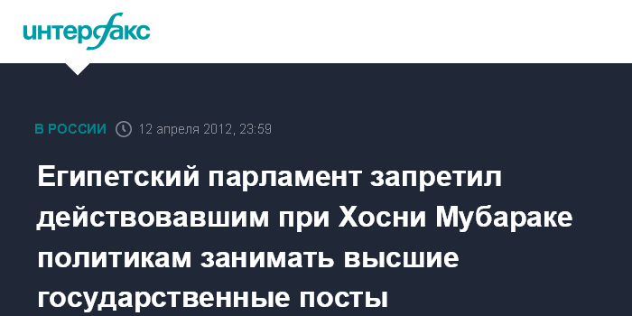 Египетский парламент запретил действовавшим при Хосни Мубараке политикам занимать высшие государственные посты