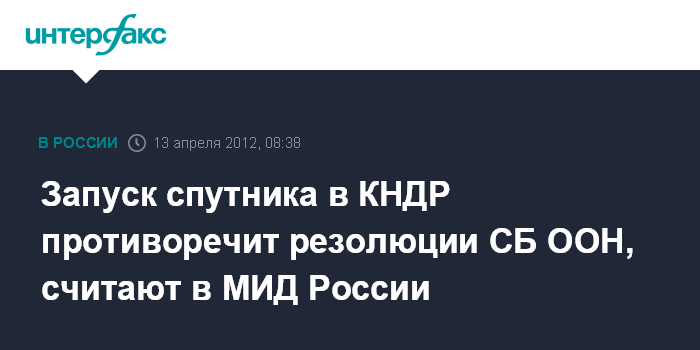 Москва. 13 апреля. INTERFAX.RU - Запуск ракеты в КНДР идет вразрез с решениями Совета Безопасности ООН, сказал "Интерфаксу" источник в МИД РФ.