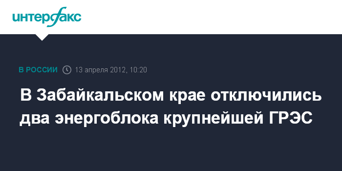 Чита. 13 апреля. ИНТЕРФАКС - Произошло автоматическое отключение двух энергоблоков на Харанорской ГРЭС (Забайкальском край, входит в ОАО "ОГК-3", сообщила пресс-служба филиала ОАО "МРСК Сибири" "Читаэнерго".