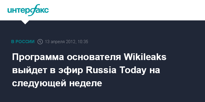 Программа основателя Wikileaks выйдет в эфир Russia Today на следующей неделе