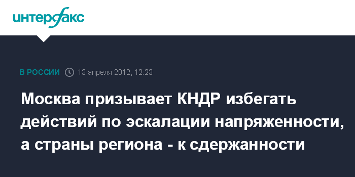 Москва. 13 апреля. INTERFAX.RU - Москва призывает Пхеньян воздерживаться от шагов, которые могли бы привести к эскалации обстановки в регионе, заявил глава МИД РФ Сергей Лавров, отвечая на вопрос "Интерфакса".