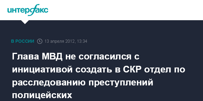 Москва. 13 апреля. INTERFAX.RU - Глава МВД РФ Рашид Нургалиев не согласен с предложениями создать внутри Следственного комитета России отдельный орган, который будет заниматься работой над преступлениями, совершенными полицейскими.