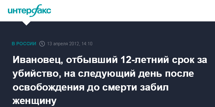Ивановец, отбывший 12-летний срок за убийство, на следующий день после освобождения до смерти забил женщину