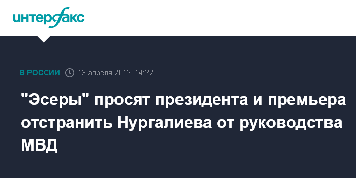 "Эсеры" просят президента и премьера отстранить Нургалиева от руководства МВД
