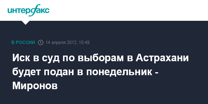 Иск в суд по выборам в Астрахани будет подан в понедельник - Миронов