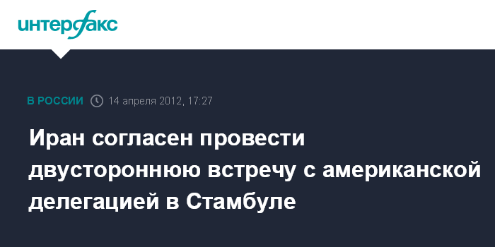 Стамбул. 14 апреля. INTERFAX.RU - Глава иранской делегации на переговорах с "шестеркой" международных посредников в Стамбуле Саид Джалили выразил готовность провести двусторонние консультации с представителями США, сообщают в субботу западные СМИ. Ранее европейские дипломаты объявили, что, по их данным, США также готовы к таким консультациям в рамках переговоров в Стамбуле.