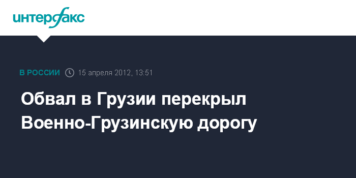Владикавказ. 15 апреля. INTERFAX.RU - Военно-Грузинская дорога, связывающая Россию со странами Закавказья, в воскресенье закрыта из-за обвала в районе населенного пункта Казбеги на территории республики Грузия, сообщает пресс-служба ГУ МЧС Северной Осетии. "Обвал перекрыл дорожное полотно на Военно-Грузинской автодороге. В связи с невозможностью обеспечения безопасного проезда автотранспортных средств и в соответствии распоряжением комиссии по чрезвычайным ситуациям правительства Северной Осетии по согласованию с грузинской стороной движение запрещено с 11:00 мск", - говорится в сообщении.