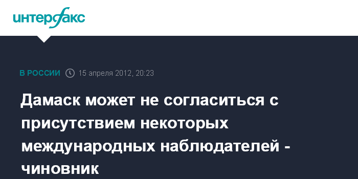 Дамаск может не согласиться с присутствием некоторых международных наблюдателей - чиновник