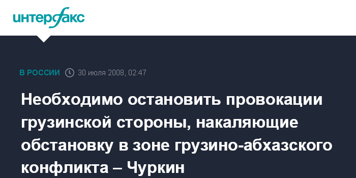 Необходимо остановить провокации грузинской стороны, накаляющие обстановку в зоне грузино-абхазского конфликта – Чуркин