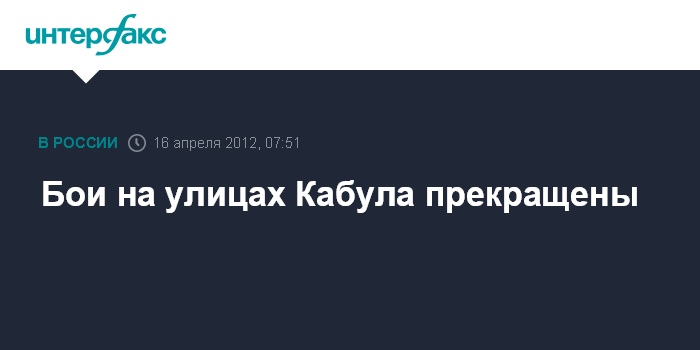 Кабул. 16 апреля. INTERFAX.RU - Бои на улицах афганской столицы прекращены, сообщили журналистам в Афганистане официальные представители полиции.