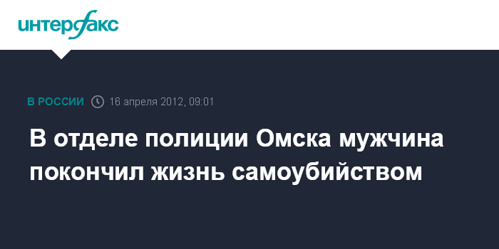 Москва. 16 апреля. INTERFAX.RU - Следственным управлением СК по Омской области проводится проверка по факту самоубийства мужчины в отделе полиции Омска.
