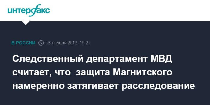 Следственный департамент МВД считает, что защита Магнитского намеренно затягивает расследование