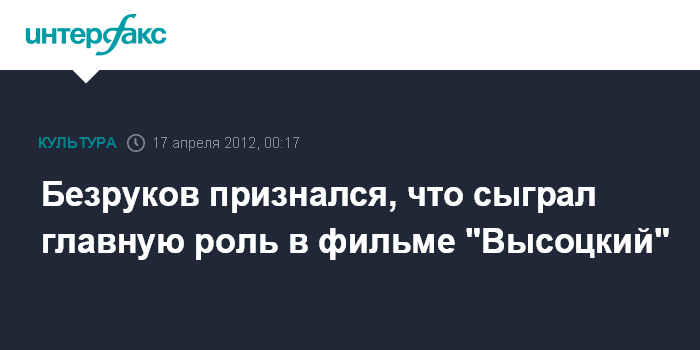 Москва. 17 апреля. INTERFAX.RU - Актер Сергей Безруков признался, что именно он сыграл роль Владимира Высоцкого в фильме "Высоцкий. Спасибо, что живой".