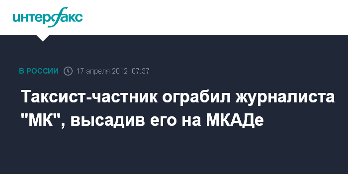 Таксист-частник ограбил журналиста "МК", высадив его на МКАДе