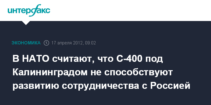 В НАТО считают, что С-400 под Калининградом не способствуют развитию сотрудничества с Россией