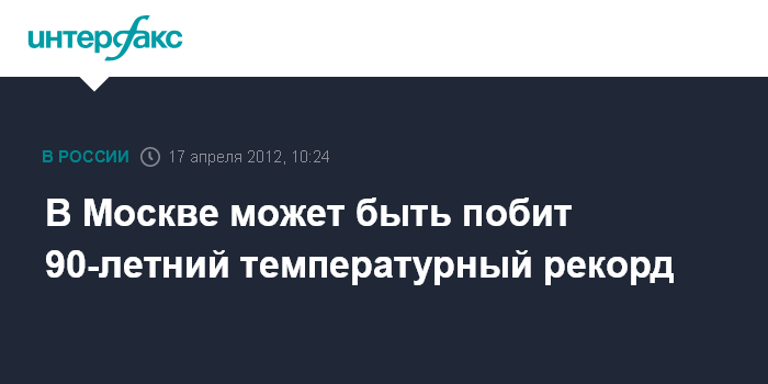 Как сообщили "Интерфаксу" в Гидрометеобюро Москвы и Московской области, не исключено, что столбик термометра может "пробить" отметку в +20 и в Москве может быть повторен рекорд 1921 г., когда было отмечено значение температуры +21,9 градуса.