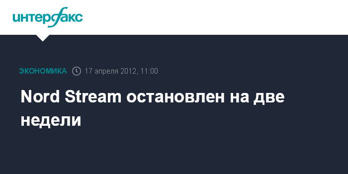 Москва. 17 апреля. INTERFAX.RU - Российско-германский морской газопровод Nord Stream с начала газового дня 9:00 мск воскресенья 15 апреля остановлен для проведения плановых работ.