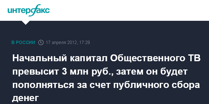 Начальный капитал Общественного ТВ превысит 3 млн руб., затем он будет пополняться за счет публичного сбора денег