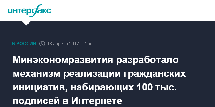 Минэкономразвития разработало механизм реализации гражданских инициатив, набирающих 100 тыс. подписей в Интернете