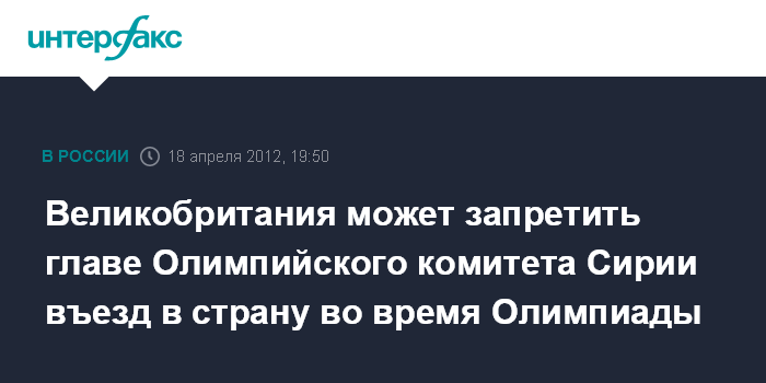 Лондон. 18 апреля. INTERFAX.RU - Правительство Великобритании рассмотрит вопрос о том, выдавать или нет британскую визу президенту Олимпийского комитета Сирии генералу Муаффаку Джумаа в период проведения Летних Олимпийских игр в Лондоне в 2012 году, сообщает в среду The Guardian.