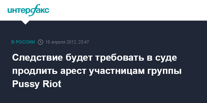 Москва. 18 апреля. INTERFAX.RU - Таганский суд в четверг рассмотрит ходатайство следствия о продлении ареста участницам панк-группы Pussy Riot, известным по скандальной акции в храме Христа Спасителя.