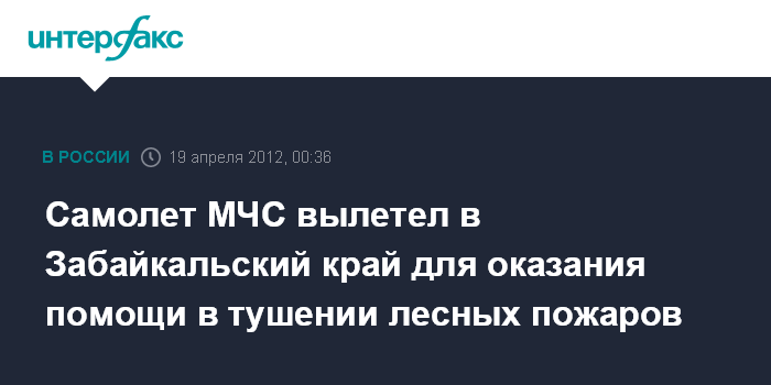 Москва. 19 апреля. ИНТЕРФАКС - МЧС России направило авиацию для тушения лесных пожаров в Забайкальском крае.