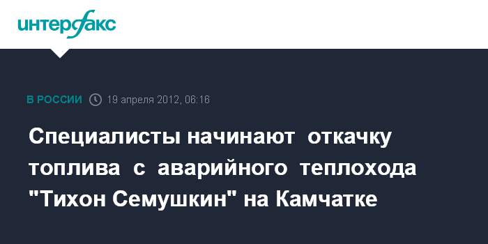 Специалисты в четверг начинают откачку топлива с теплохода "Тихон