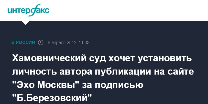 Хамовнический суд хочет установить личность автора публикации на сайте "Эхо Москвы" за подписью "Б.Березовский"