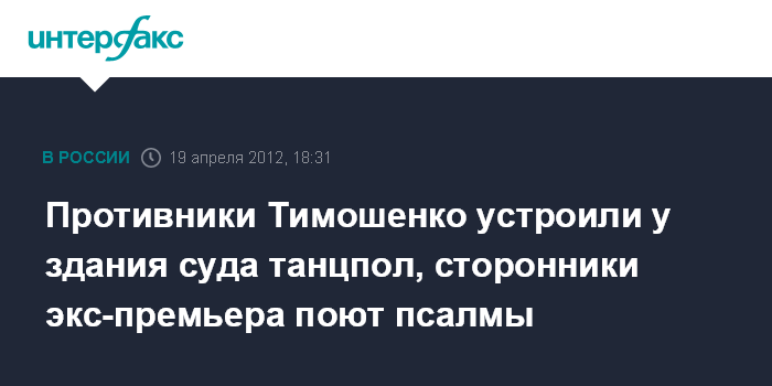 Участники обеих акций не только стоят, но и сидят на газонах перед зданием суда. Противники Тимошенко включили на большой громкости эстрадную музыку, девушки с государственными флагами в руках пританцовывают. Сторонники экс-премьера выступают с трибуны, утверждая, что она не виновна, и поют украинские народные песни и псалмы.