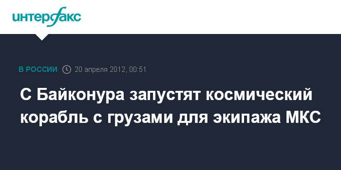 С Байконура запустят космический корабль с грузами для экипажа МКС