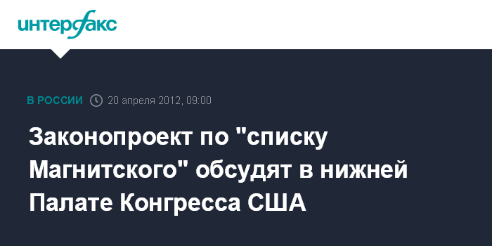 Законопроект по "списку Магнитского" обсудят в нижней Палате Конгресса США