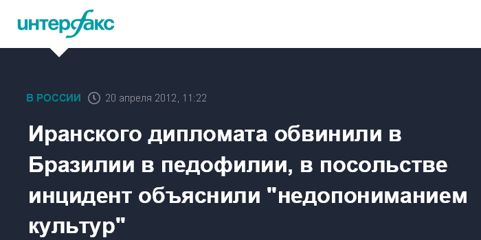 Иранского дипломата обвинили в Бразилии в педофилии, в посольстве инцидент объяснили "недопониманием культур"