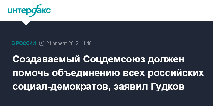 Создаваемый Соцдемсоюз должен помочь объединению всех российских социал-демократов, заявил Гудков