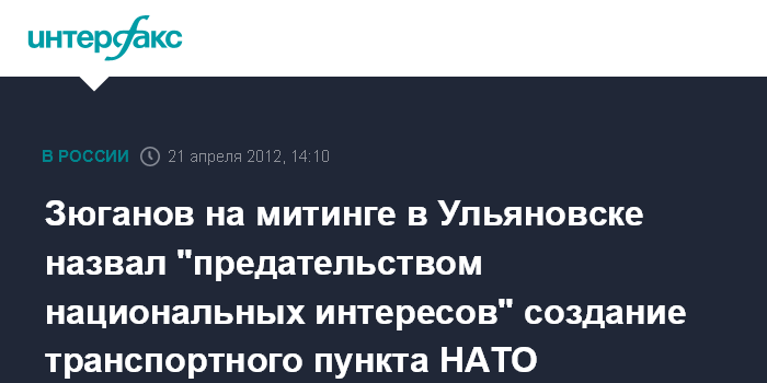 Зюганов на митинге в Ульяновске назвал "предательством национальных интересов" создание транспортного пункта НАТО