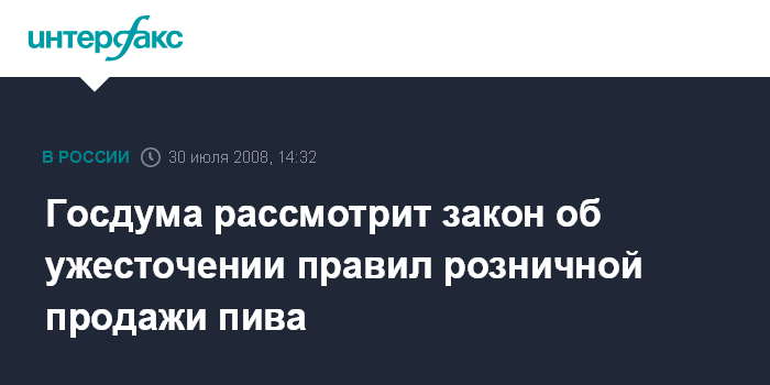 Госдума рассмотрит закон об ужесточении правил розничной продажи пива