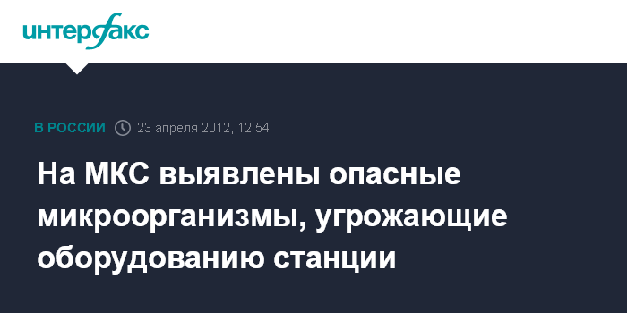 Москва. 23 апреля. INTERFAX.RU - Обнаруженные на Международной космической станции микробы могут привести к выходу из строя оборудования, сообщил вице-президент РАН Анатолий Григорьев.