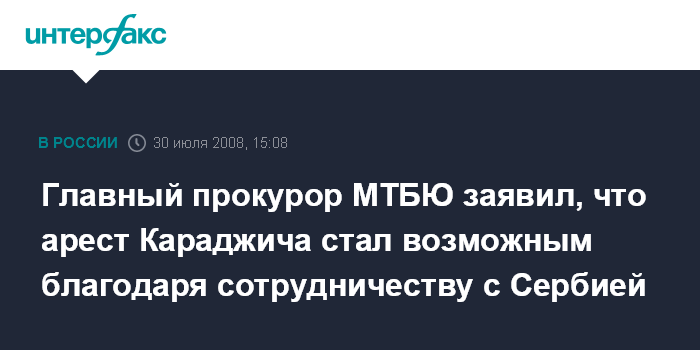 Главный прокурор МТБЮ заявил, что арест Караджича стал возможным благодаря сотрудничеству с Сербией