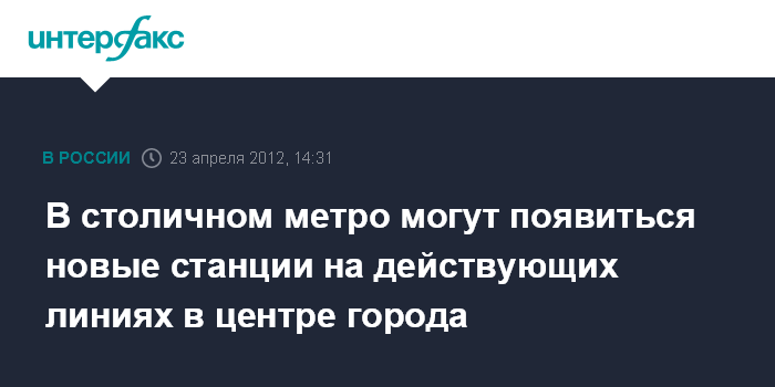Москва. 23 апреля. INTERFAX.RU - В правительстве Москвы прорабатывают вопрос создания новых станций на действующих линиях метрополитена в центральной части города.