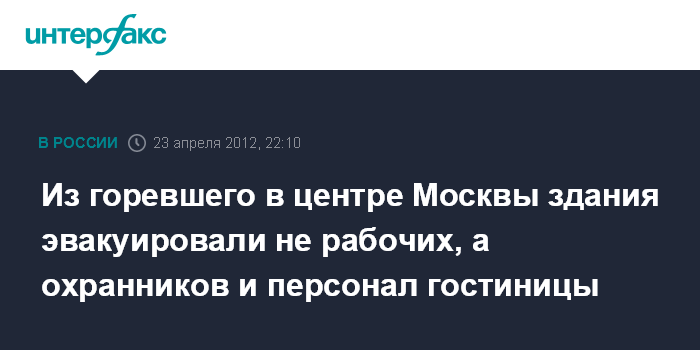 Из горевшего в центре Москвы здания эвакуировали не рабочих, а охранников и персонал гостиницы
