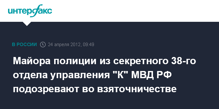 Майора полиции из секретного 38-го отдела управления "К" МВД РФ подозревают во взяточничестве